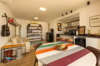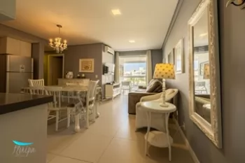 Excelente apartamentos de 2 dorm. com suíte, totalmente Mobiliado, Equipado e Climatizado em Ingleses Norte a parte mais valorizada do Balneário. 85m² de área privativa, sala para 2 ambientes, cozinha americana e área de serviço separada.
