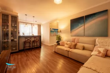 2 dorm. sendo 1 suíte, 85,39m² de área privativa, ampla sala com cozinha integrada e sacada com churrasqueira. 1 vaga de garagem.
