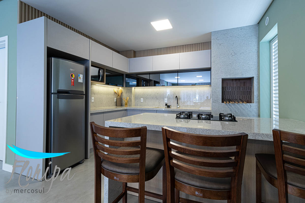 Sala ampla para 2 ambientes, sacada com churrasqueira, cozinha americana, 1 suíte, wc social e 2 vagas na garagem. Condomínio clube com piscina adulto e infantil, academia, salão de festas, fitness, pista de caminhada, churrasqueiras externas cobertas e campo de futebol. Portaria 24h.