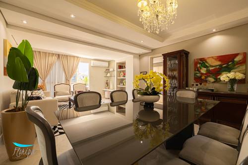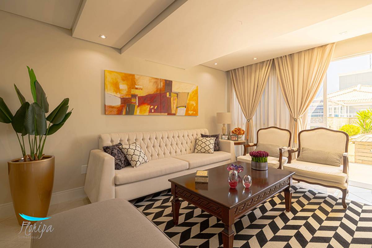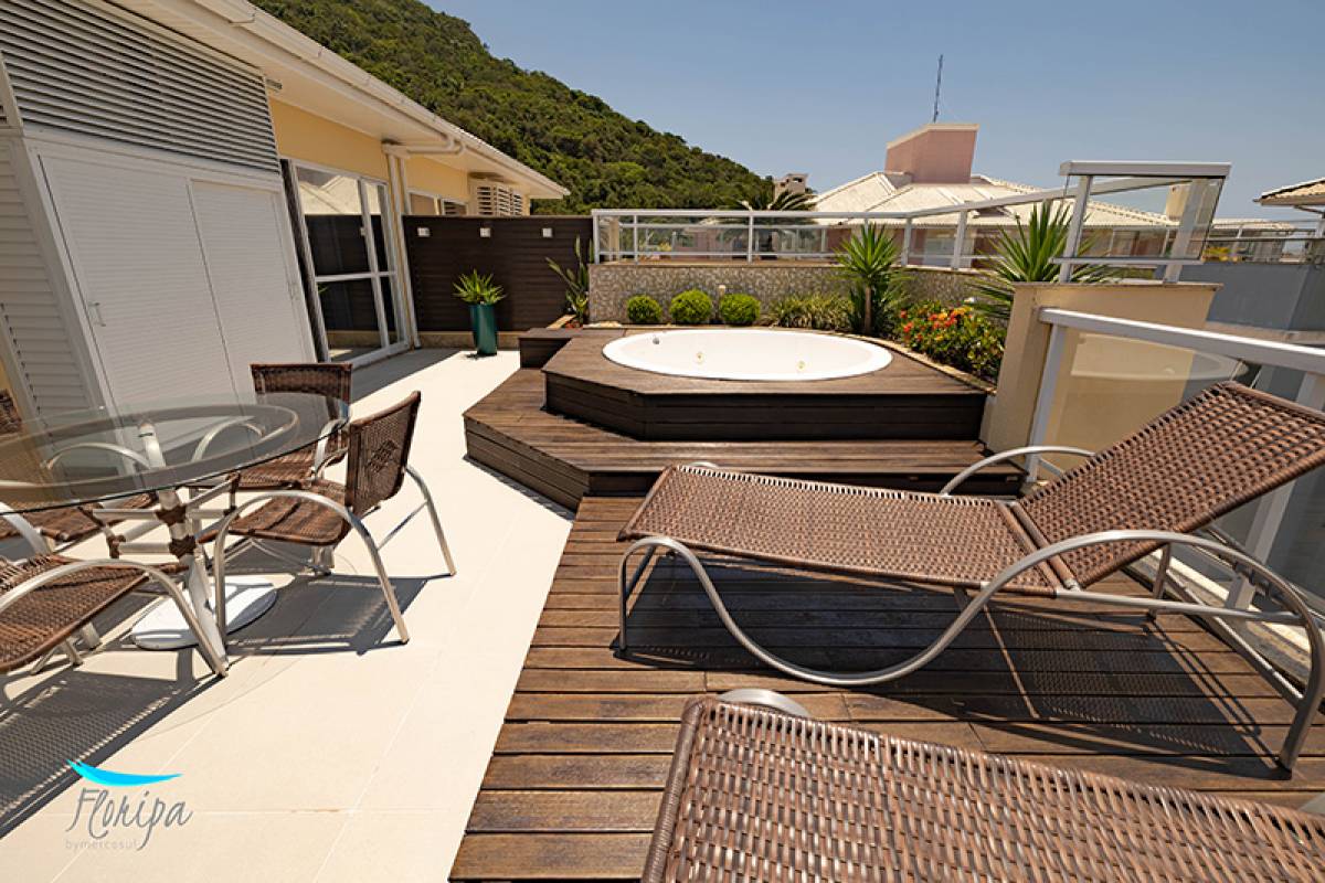 Cobertura horizontal de alto padrão construtivo e mobiliário. Ambientes de extremo bom gosto com 182m² de área privativa. 2 dorm sendo uma suíte máster com closet. Ambientes de sala e cozinha integradas, espaço gourmet, amplo terraço com jacuzzi e 2 vagas de garagem. Posição solar leste em condomínio com lazer completo na beira mar dos Ingleses. Totalmente mobiliada e equipada.