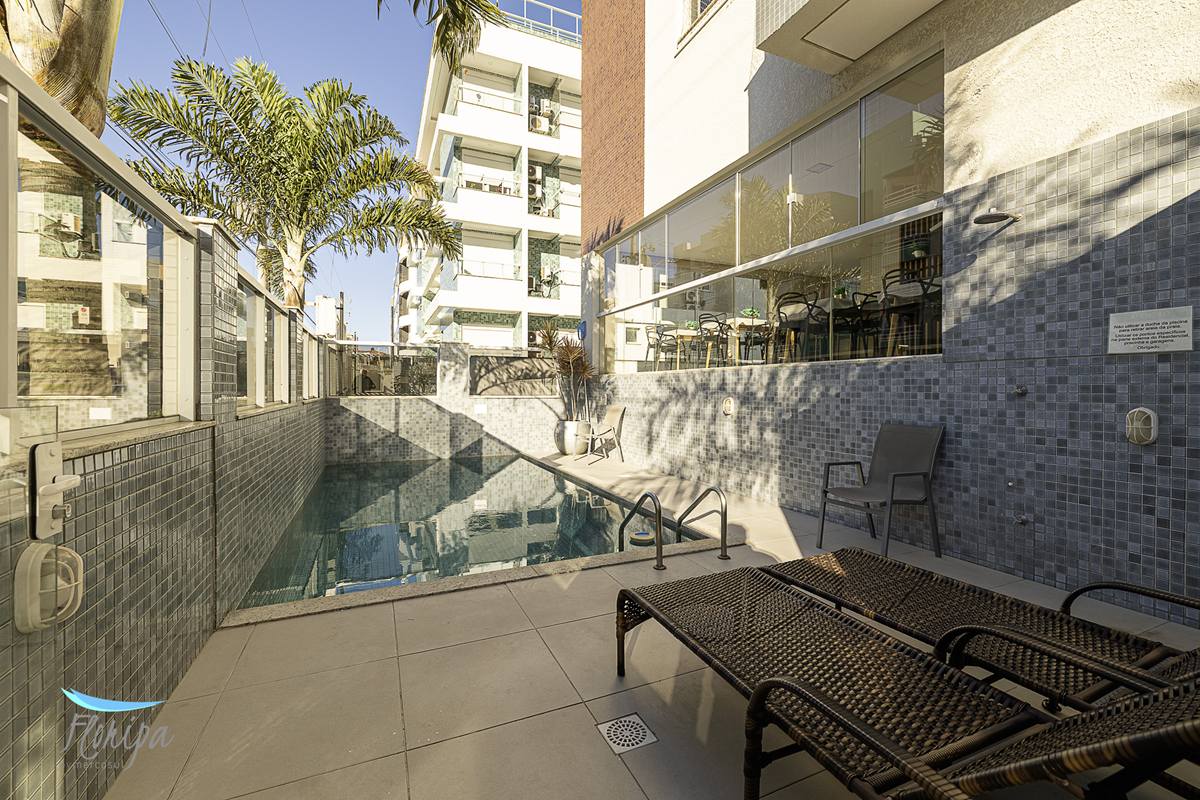 Apartamento de frente com 2 suítes e lavabo a 100 metros do mar, mobiliado e equipado em Ingleses Norte a parte mais linda do Balneário. Amplo terraço com churrasqueira, sala para 2 ambientes, cozinha americana e lavanderia. Edifício com elevador e elevador de cadeirante, piscina e salão de festas. Posição solar norte e 1 vaga de garagem.