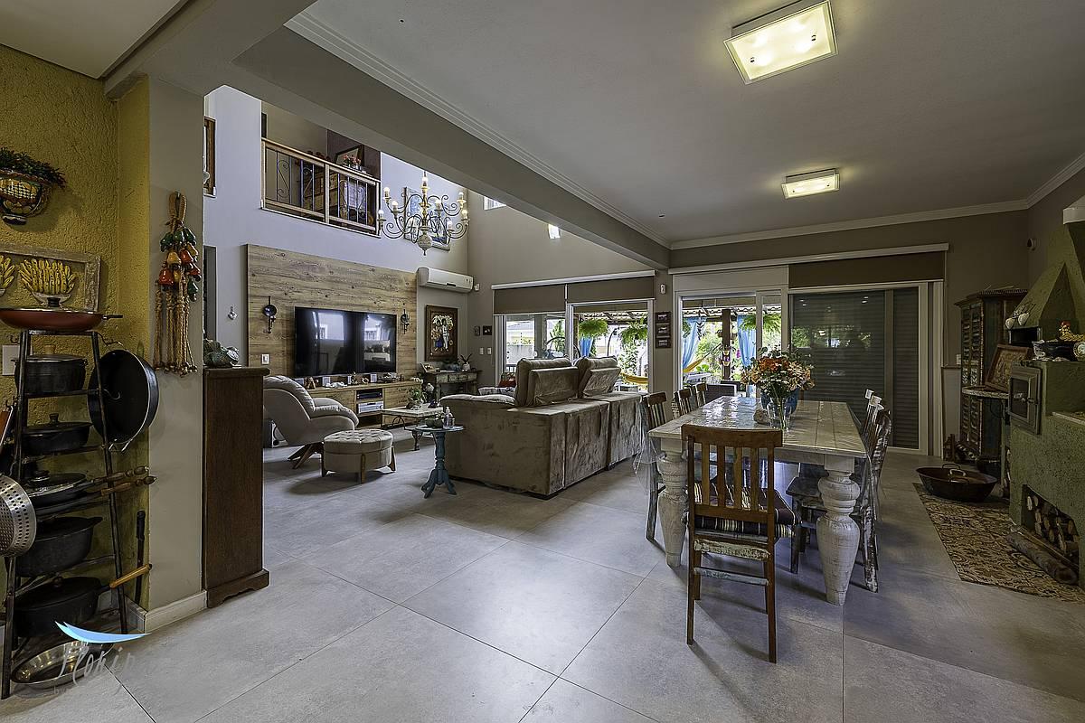Casa em Condominio cerrado 350m² de área construida; 4 dorm. siendo 1 en suite y 2 semi-suítes, 3 baños y baño social. Sala de estar hacia 4 ambientes, cocina con campana, lavadero, depósito y sala de Tv. Área gourmet completa con cocina independiente, parrillero y horno a leña. Jacuzzi externo climatizado, jardin con huerta y estacionamiento para 2 autos.